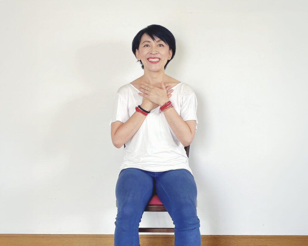 1分もかからない、このヨガで驚くほど、のどや首、顔がリラックスします。深い呼吸は、心の落ち着きや集中力の回復にもつながります。