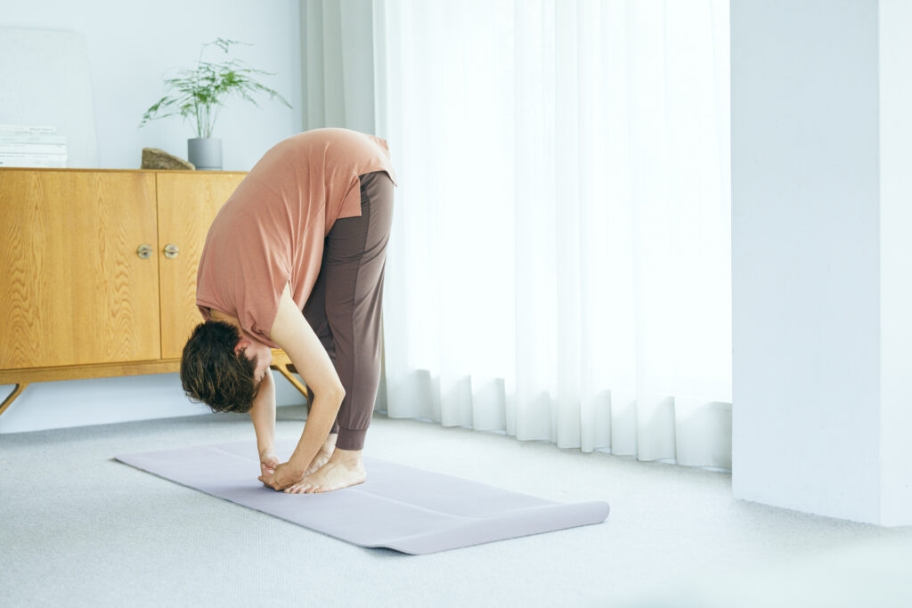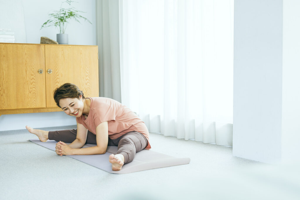 ヨガやピラティスで学んだカラダの使い方を参考にしたストレッチは、夜にゆっくり湯船につかって入浴した後、時間に余裕があるときも行うそう。