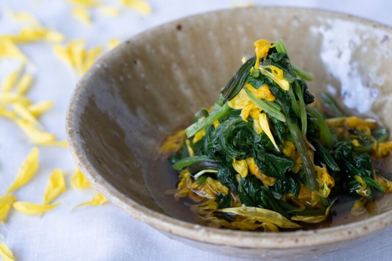 「菊花とほうれん草のおひたし」と「えびと豆腐の菊花あん」